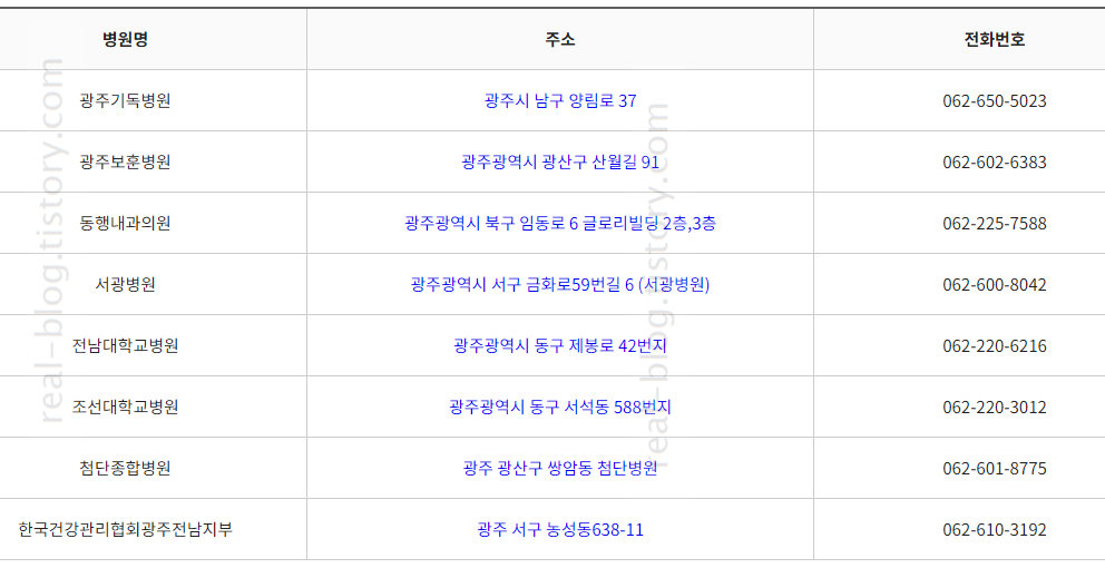 아래는 직접 해당 싸이트를 참조하여 광역시 병원 목록만 발췌하였습니다.
