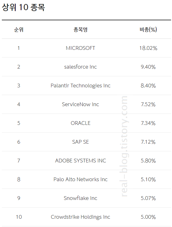 마이크로소프트, 세일즈포스 등 미국 AI소프트웨어 산업을 대표하는 기업에 집중 투자하는 ETF